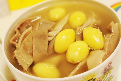 白果焖猪肚,营养丰富,搭配合理。白果具有通畅血管、保护肝脏、改善大脑功能、润皮肤、抗衰老、治疗老年痴呆症和脑供血不足等功效。