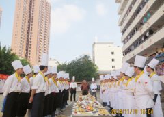 2014年11月11日下午,广西华南烹饪学校两年制金牌七班在大学路校区举行了隆重的开班典礼。经过前阶段的军训,同学们已经慢慢的适应了学校的生活。新生学子们满怀激情地站在了人生的新起点上。典礼上由金牌七班班主任